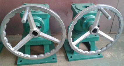 侧摇式启闭机是手动启闭机产品,规格有0.5T 1T 2T 3T.它是一种采用人力操作的平面闸门启闭机械产品,并且安装有自锁功能,闸门可停留在任何位置,配有防盗嘴及专用工具,它有防盗水功能,机头和底座可单独供货。此种启闭机把手可自由装卸,手摇压力小于15kgf,其性能可靠,为中小吨位闸门理想之启闭设备。