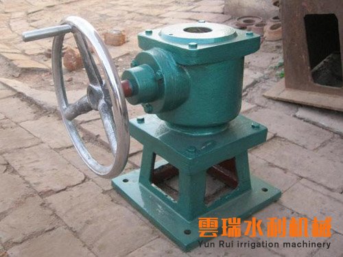 2、将手动螺杆启闭机置于安装位置。把一个限位盘套在螺杆上,将螺杆从横梁的下部旋入机器中,当螺杆从机器的上方露出后,再套上限位盘。螺杆的下方与闸门连接。