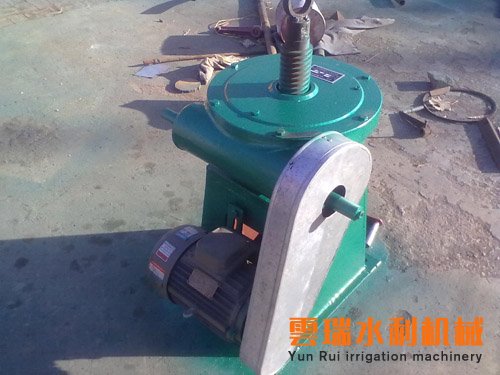 2、将手动螺杆启闭机置于安装位置。把一个限位盘套在螺杆上,将螺杆从横梁的下部旋入机器中,当螺杆从机器的上方露出后,再套上限位盘。螺杆的下方与闸门连接。