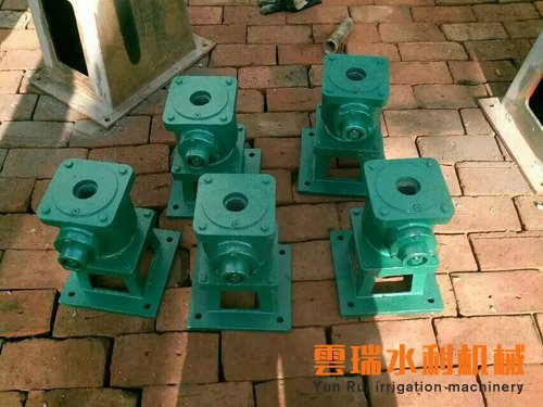 2、将手动螺杆启闭机置于安装位置。把一个限位盘套在螺杆上,将螺杆从横梁的下部旋入机器中,当螺杆从机器的上方露出后,再套上限位盘。螺杆的下方与闸门连接。