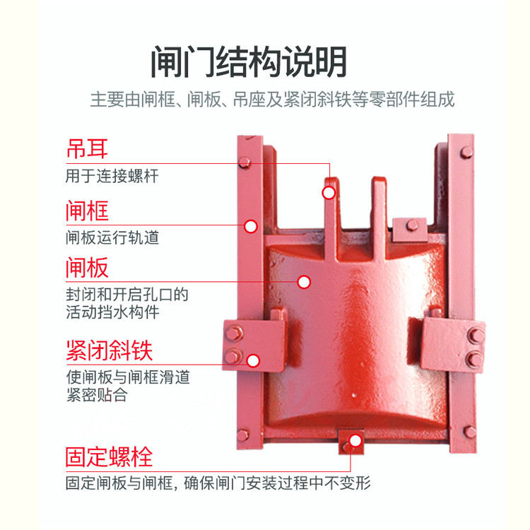 本闸门由门框、闸门板、导轨、密封条、可调整密封机构等部件构成,其密封原理是门框固定在池壁上,导轨固定在门框和墙壁上,闸门板通过导轨开闭动作,直到闸门板上的剪刀碰到导轨条上的剪刀,闸门的密封面接近门框上的密封面,发挥密封效果适用于供水排水、水利和防洪等水工构筑物的供水口、池塘和集水井,用于切换流道或切断水流。该闸机可通过开关机在平台上操作,可根据客户要求配置手动、手电两用。