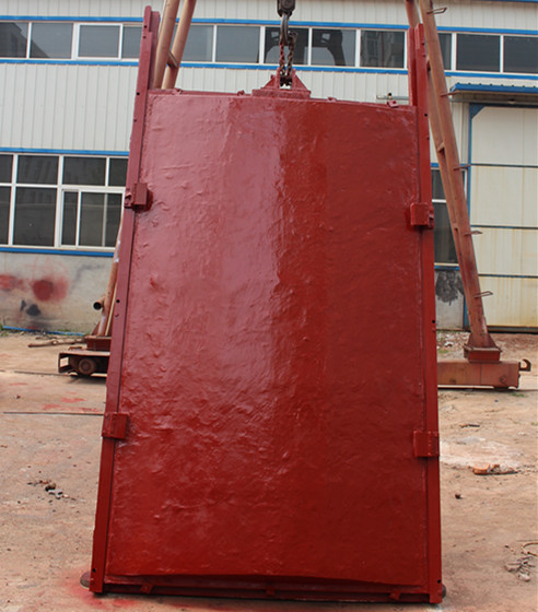 直升式平面滑动 主要由闸框、闸板、吊座及紧闭斜铁等零部件组成。为克服以往钢门易锈蚀的缺点,闸框、闸板全采用铸铁组成,其中闸框又由上横梁、下横梁、左直梁、右直梁组成。为了制造、运输、安装方便,闸板一般根据其大小或高度情况由上下几部分拼装组成。