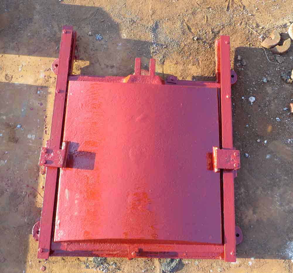 铸铁闸门一般设置有可调节的楔紧装置,楔紧副(如楔块与楔块、楔块与偏心销等)分别设在门体和门框上。调节楔紧装置,可使得闸门关闭时门体紧贴门框,达到止水要求。