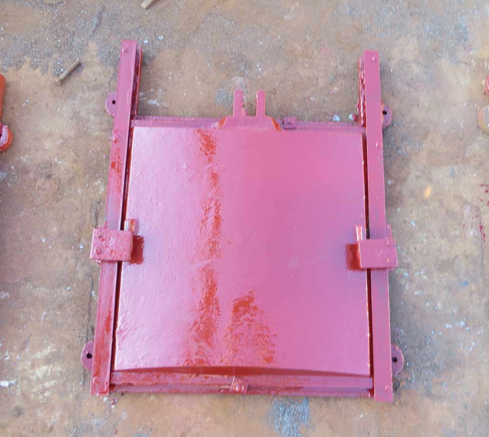 门体一般采用面板与加强肋的结构,面板可做平面或拱形。门体一般整体铸造和机加工,但尺寸较大的可采用分块组成式。门体上一般采用整体式金属止水,兼作支承滑块,金属止水用同材料制作的沉头螺钉紧固在门体上,螺钉头部与止水工作面一起精加工,一些尺寸较大的也可“P”形橡皮止水。